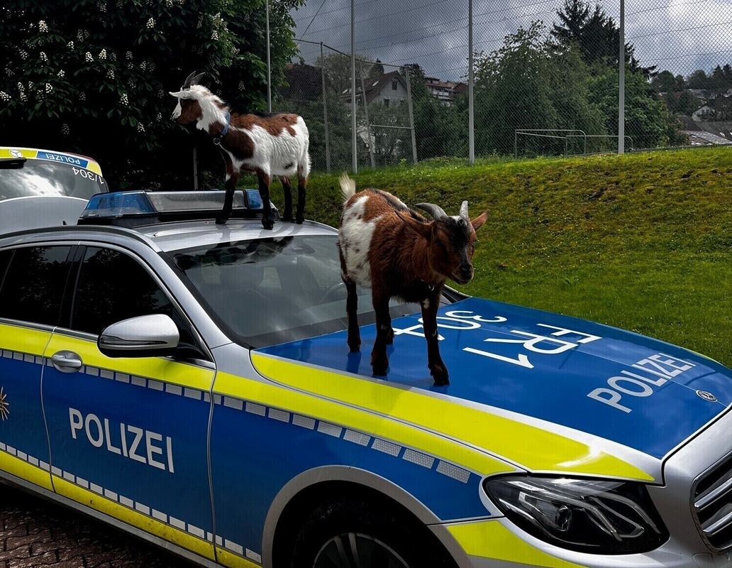 SCHOPFHEIM. Zwei Ziegen sind in Schopfheim im Landkreis Lörrach auf ein Polizeiauto geklettert. Zeugen hatten insgesamt drei Tiere beobachtet, wie sie an einem Tennisplatz Autos bestiegen, wie die Polizei am Montag mitteilte. Beim Eintreffen der Beamten erklommen sie auch das Einsatzfahrzeug.