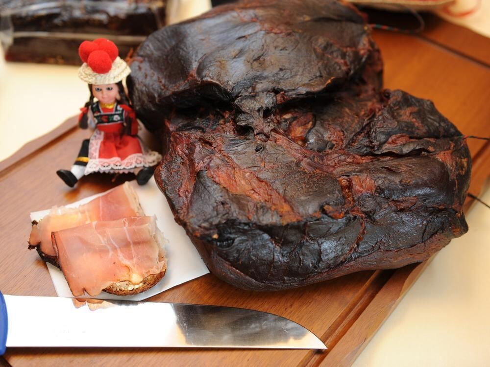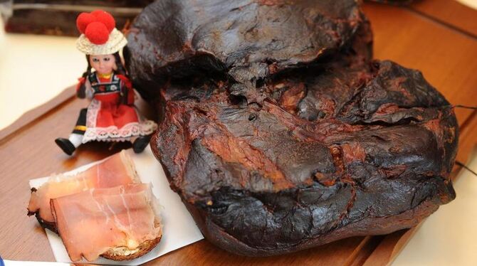 Gewonnen wird der Schwarzwälder Schinken aus der Hinterkeule vom Schwein. Die Aromen gewinnt er durch das Pökeln mit Salz und Gewürzen, Reife- und Ruhephasen sowie die traditionelle Kalträucherung über Nadelholz. (dpa)