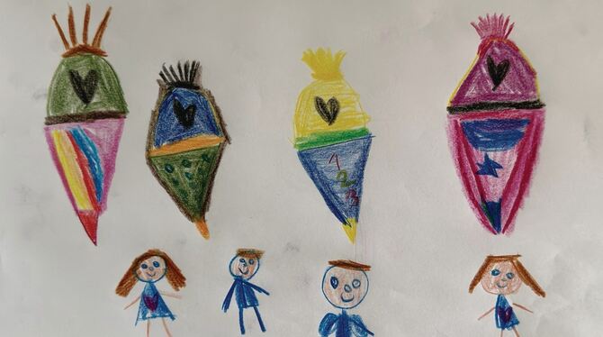 Ein Kind, das eine gefüllte Schultüte bekommen hat, bedankte sich bei »GEA-Leser helfen« mit einem selbst gemalten Bild. GEA-REPRO
