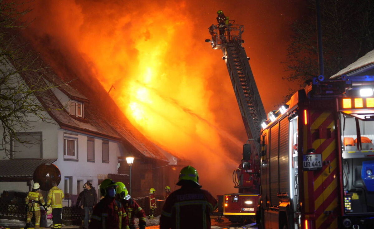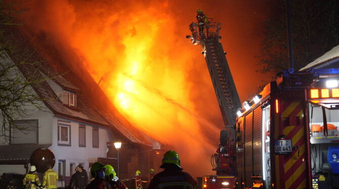 ST. JOHANN-UPFINGEN. In der Nacht vom 19. zum 20. Dezember ist mitten in Upfingen ein Pferdehof niedergebrannt. Obwohl die Feuerwehr schnell vor Ort war und verhinderte, dass sich der Brand auf benachbarte Gebäude ausbreitete, konnte der Stall nicht gerettet werden. Auch das Wohnhaus ist schwer beschädigt und nicht mehr bewohnbar. Sieben Pferde starben, zwei flüchteten ins Freie und konnten später in Sicherheit gebracht werden. Sie haben, wie auch die betroffene Familie, eine neue Bleibe auf Zeit gefunden.