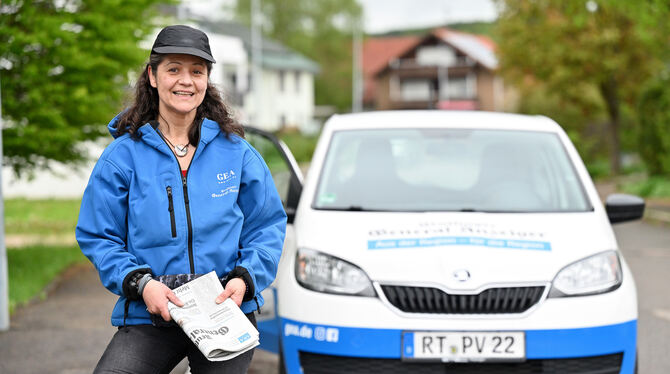 Die GEA-Zustellerin Monika Javorscak ist sechs Nächte in der Woche bei Wind und Wetter im Einsatz. FOTO: PIETH
