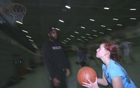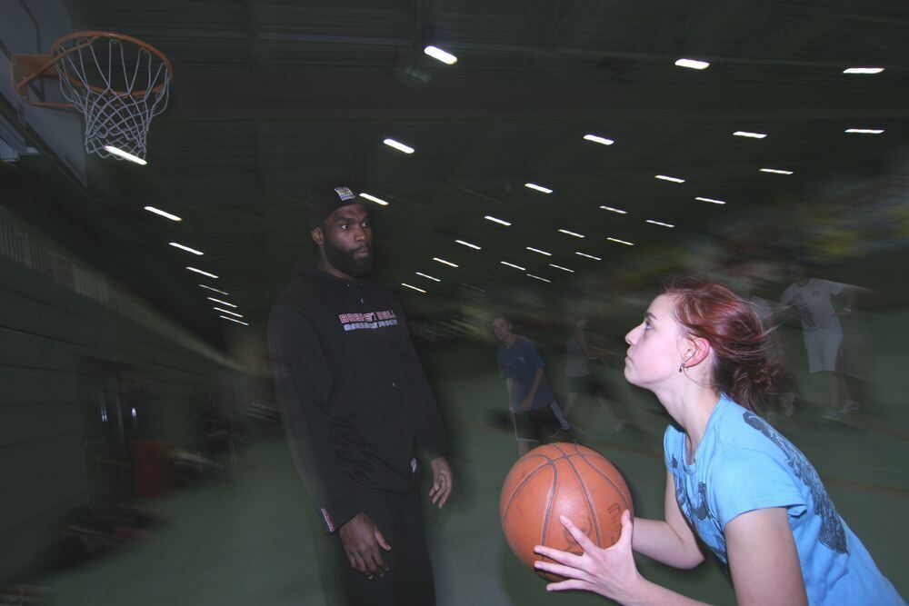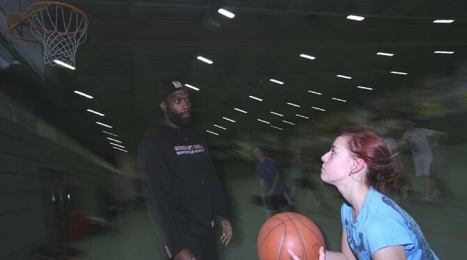 Gleich zuckt der rechte Arm raus - an Kenny Williams kommt so schnell niemand vorbei. Schülerinnen und Schüler von ZmS haben's gestern trotzdem probiert.
