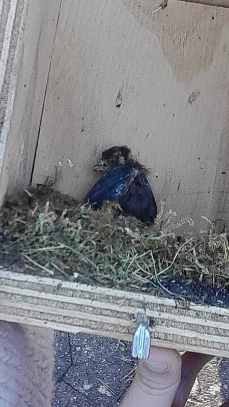 Diese Nistkästen hängt man aber nicht nur einfach auf und das war es dann, man muss sie auch regelmäßig kontrollieren und säubern. Deshalb kamen Mitarbeiter vom Listhof zu uns und haben mit den Schülerinnen und Schülern die Nistkästen abgenommen und kontrolliert. Die Leute vom Listhof schauten mit den Kindern nach, ob sich Vögel eingenistet hatten oder was man in den Nestern finden konnte. Im ersten Kasten waren ein Nest und ein kleines Ei. Die nächsten beiden waren leer. Im vierten war wieder ein Nest – aber dieses mal ohne Ei. Ilona Schrimpf vom Listhof meinte, dass in dem Nest eine Meise gewohnt hat. Im fünfte Nest waren nur Exkremente der Vögel. Als wir am sechsten Kasten waren, fanden wir ein Nest mit einer Baby-Blaumeise, die wahrscheinlich im Mai gestorben war. Der siebte Kasten war ganz leer.