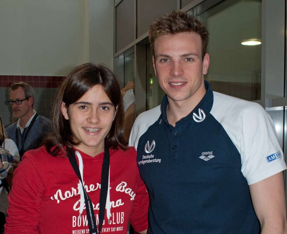 An dem Wettkampf nahmen 198 Vereine teil, die aus dem gesamten Bundesgebiet anreisten. Ich sah hautnah Spitzenschwimmer wie Paul Biedermann, Steffen Deibler, Britta Steffen oder Jenny Mensing und viele andere. Ich habe mich natürlich gefreut, als ich mehrere Autogramme ergattern und sogar ein Foto mit einem meiner großen Vorbilder machen konnte.
