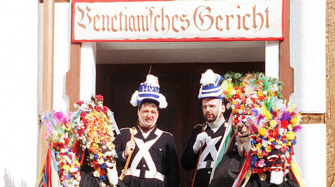 GROSSELFINGEN. Der Überlieferung nach geht das Narrengericht bis ins 15. Jahrhundert zurück. Als die Pest ausgebrochen war, fand man die Bevölkerung in großer Niedergeschlagenheit vor. So entschlossen sich die Herren von Bubenhofen, dem Volk neue Hoffnung zu machen. Sie erfanden das Narrengericht. Noch heute verkörpern die Butzen mit ihren furchterregenden Larven die Pest und den Tod.