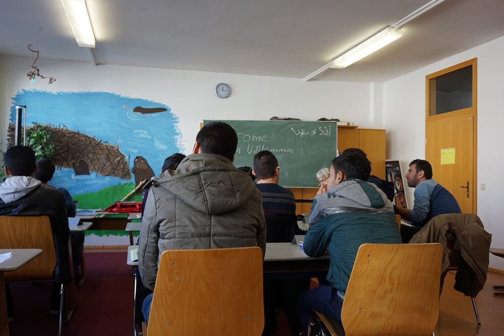 Ausgerüstet mit einem Stift und einem Arbeitsbuch kommen die Flüchtlinge werktags für jeweils vier Stunden in das alte Gebäude. Zehn Wochen lang besuchen die Flüchtlinge den Deutschkurs, der vom Arbeitsamt finanziert wird. In dieser Zeit wird die Anwesenheit der Flüchtlinge registriert. Bei vielen Fehlstunden sind die Chancen gering, für die weiterführenden Kurse zugelassen zu werden.