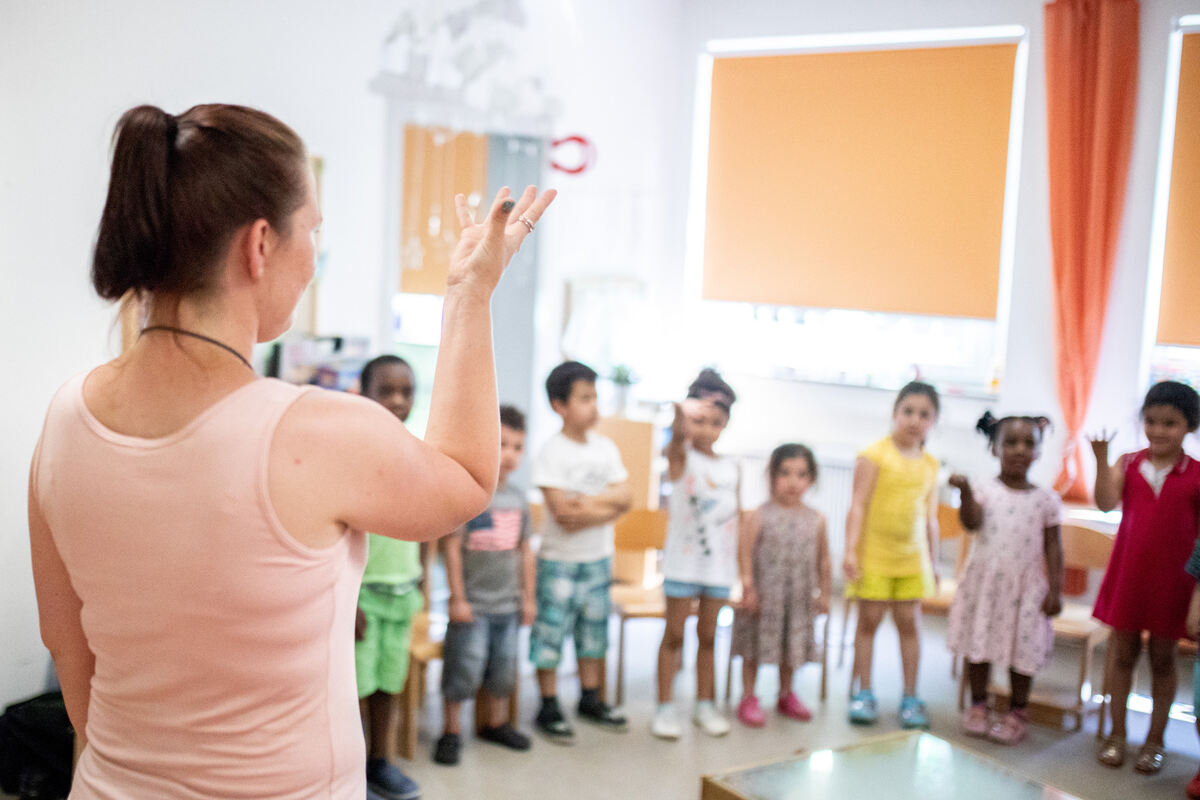 Lea: Die anderen Kinder in der Gruppe sind zwar meist noch sehr klein, jedoch strengen sie sich an, Gebärdensprache zu lernen. Viele müssen erst Deutsch lernen, da sie zum Teil Sprachentwicklungsstörungen haben. Wir haben auch Lieder gesungen und sie mit Gebärden unterstützt. Schon im Kindergartenalter fangen die Kinder an, die Sprache zu lernen.
