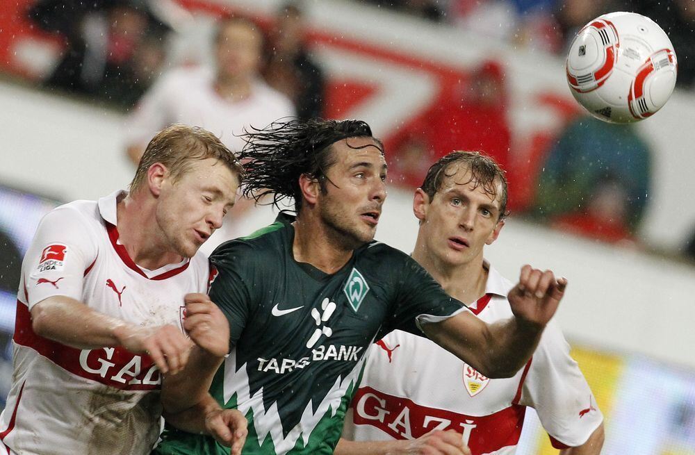 Am 7. November stand Patrick Funk (links) gegen Werder Bremen (Mitte: Claudio Pizarro) auf dem Platz. Foto: AP