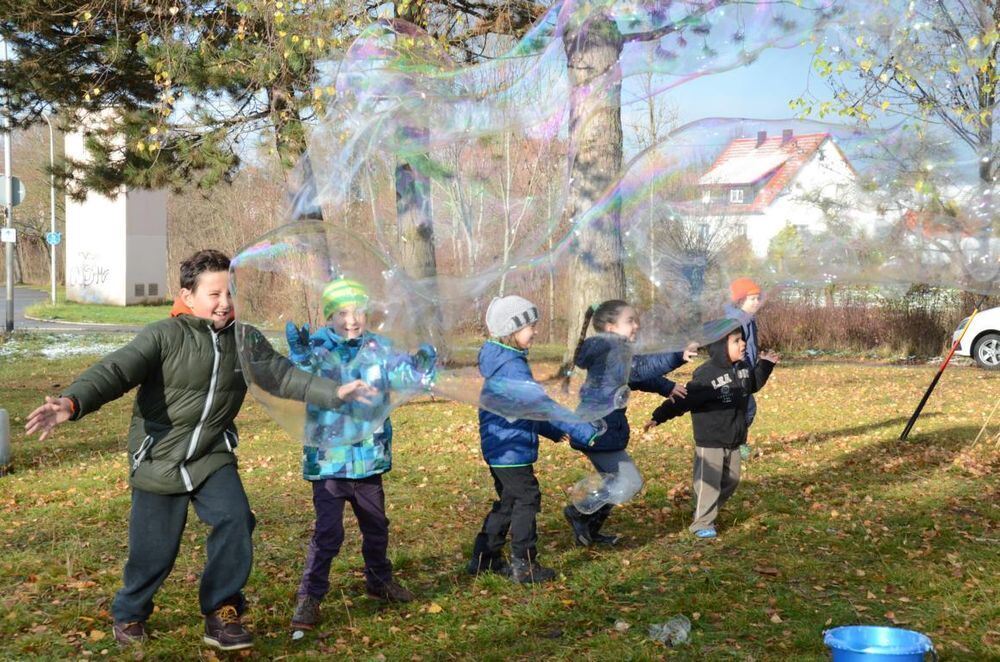 Ohne Ankündigung stellten die beiden sich vor die Unterkünfte und fingen einfach an, Seifenblasen zu machen. Die Kinder und Familien kamen dann von ganz alleine dazu. Auf die Frage, ob es einen Unterschied gibt, vor deutschen Kindern oder vor Flüchtlingskindern zu spielen, antwortete Klausi: »Die Flüchtlingskinder sind sehr dankbar dafür und äußern ihre Begeisterung auch. Vielleicht liegt es daran, dass sie so etwas noch gar nie gesehen haben in dieser Größenordnung oder auch einfach, weil sie sonst so isoliert sind?«