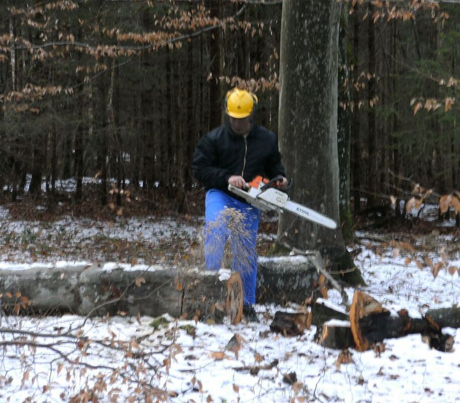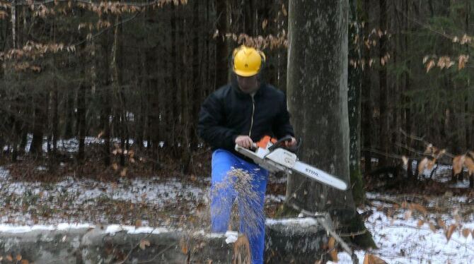 Reusch: Im Revier, in dem ich arbeite, fällen wir circa 8 000 Festmeter, also Kubikmeter Holz im Jahr.
