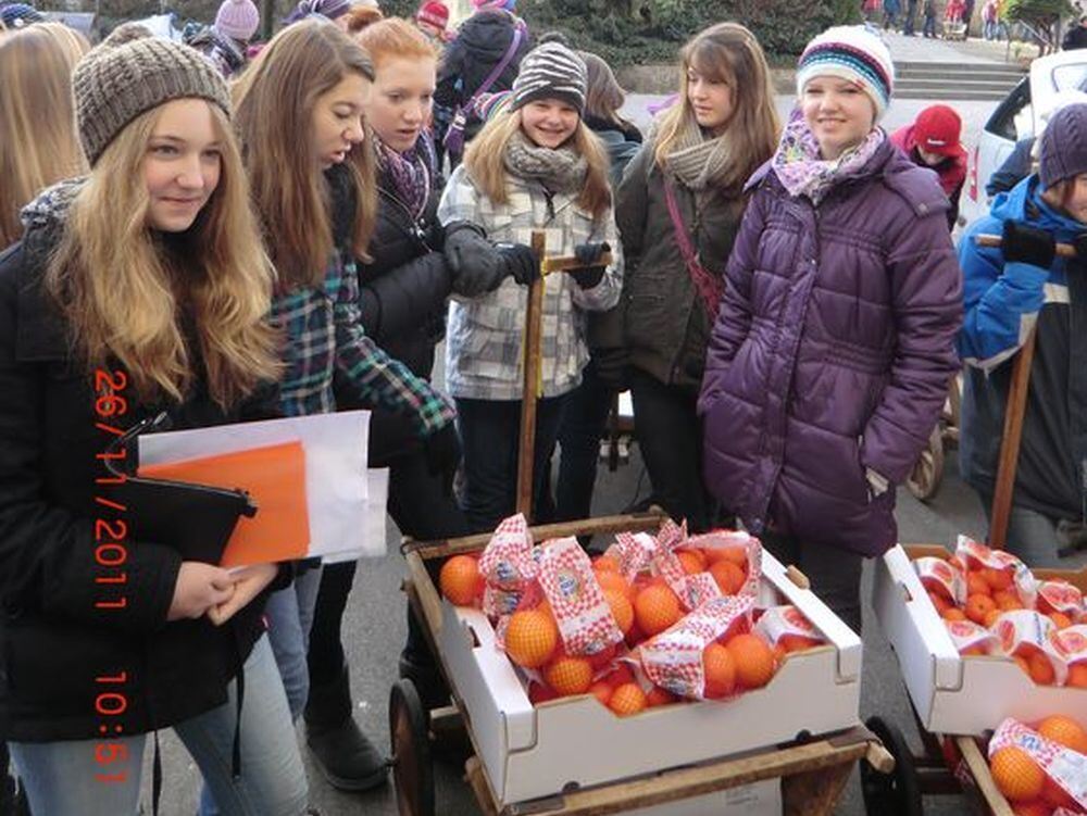 Jede Jungschargruppe bekam ein Gebiet in Hülben und einen Leiterwagen zugeteilt, mit dem sie Orangen und Clementinen verkaufen durften. Pro Netz wurden 2,50 Euro eingenommen.Trotz vieler Käufer blieb noch genug übrig, sodass die Gruppen auch selber Clementinen essen konnten. Nach getaner Arbeit wurden die Jungschargruppen noch zu einem warmen Essen ins Gemeindehaus eingeladen. Die übrig gebliebenen Früchte wurden am darauffolgenden Tag nach dem Gottesdienst zum Verkauf angeboten. Die Aktion machte uns allen sehr viel Spaß. Wir hoffen, dass auch in Zukunft die Orangenaktion stattfinden kann und vielen bedürftigen Kindern geholfen wird. (ZmS)