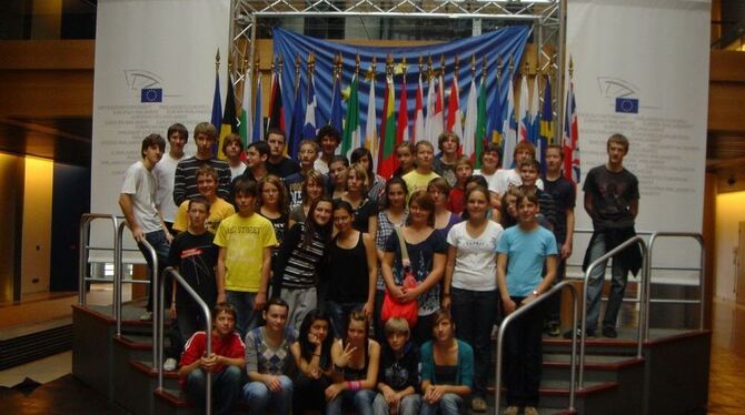 Besonders beeindruckend fanden wir die vielen Simultandolmetscher, die in Logen oberhalb der Politiker sitzen. Jeder Abgeordnete kann in seiner Muttersprache sprechen, alle Beiträge werden dann direkt in allen nötigen Sprachen übersetzt. Am Schluss durften wir noch den Raum der Journalisten sehen und wurden dann nach draußen begleitet.