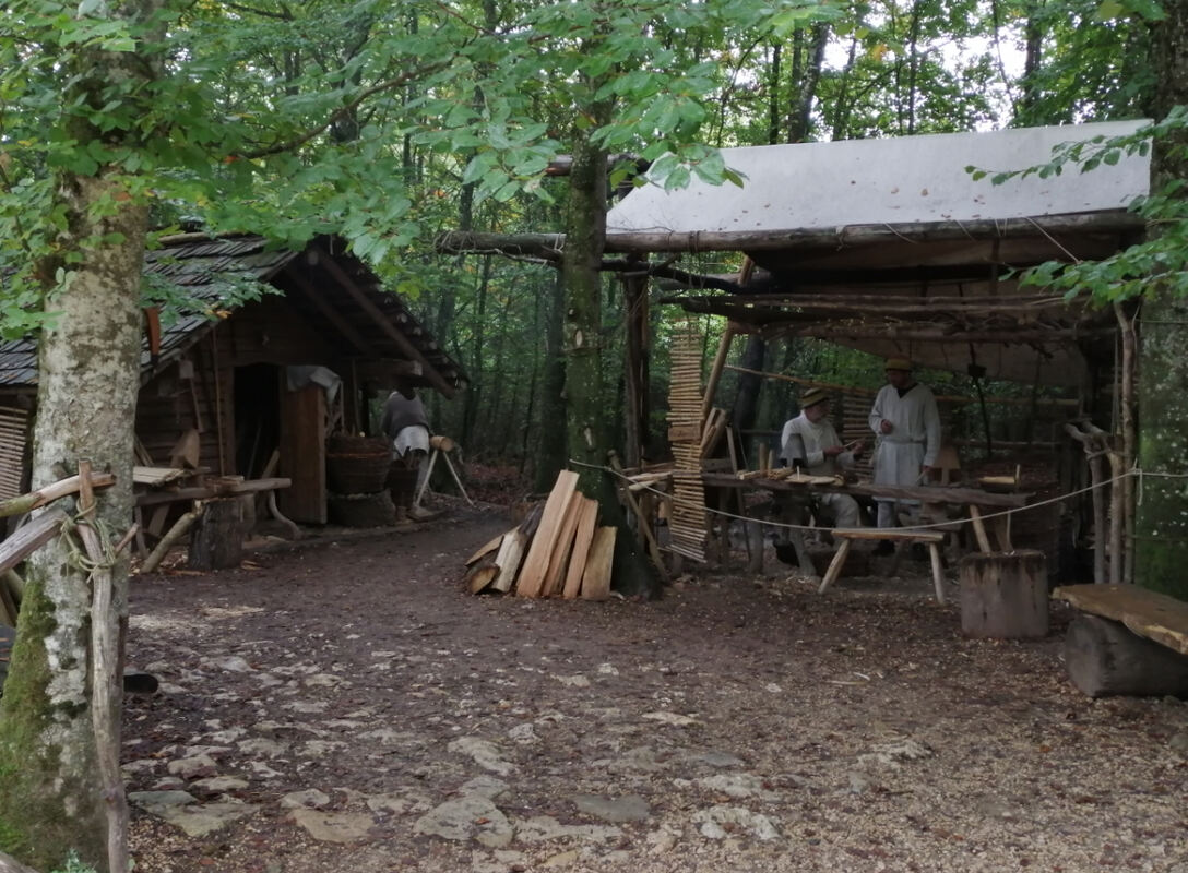 Sobald man den Eingang hinter sich gelassen hat und ein Stück in den Wald gelaufen ist, fühlt man sich über 1 100 Jahre zurückversetzt. Die Arbeiter tragen alte Kleidung, es gibt keine gepflasterten Wege und man sieht überall Hühner frei herumlaufen. Auch die beiden Hausschweine Rippchen und Kotletti, die auf eine alte Rasse zurückgezüchtet wurden, passen in diese Umgebung. Auf Tierschutz wird aber genauso geachtet wie auf den Personenschutz, obwohl die Angestellten hier wie damals unter harten Bedingungen arbeiten. Trotz des mittelalterlichen Kostüms tragen sie Arbeits- statt Holzschuhe und ab und zu sogar Schutzkleidung. Ein Feuerlöscher darf bei manchen Berufen nicht fehlen.