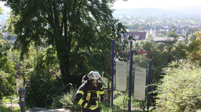Sicherheits- und Trauma-Notfall-Tag in Gomaringen: Christoph Groß aus Mössingen beim Rescue Run. Foto: Michael Sturm