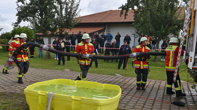 STARZACH/TÜBINGEN. Die olympischen Spiele sind in Verlängerung gegangen: Am Wochenende haben in Starzach-Wachendorf viele Feuerwehr-Helfer des Kreises Tübingen um die begehrten Leistungsabzeichen gewetteifert. Im Gegensatz zu Olympia kämpfen die ehrenamtlichen Retter nicht gegeneinander, sondern in Gruppen miteinander. Die Abnahme der Leistungsabzeichen dient dem intensiven Einüben feuerwehrtechnischer Grundtätigkeiten. Wenn die wie im Schlaf fehlerfrei beherrscht werden, können im Ernstfall effektiv Menschen aus Notsituationen gerettet und bedeutende Sachwerte schnell geschützt werden.
