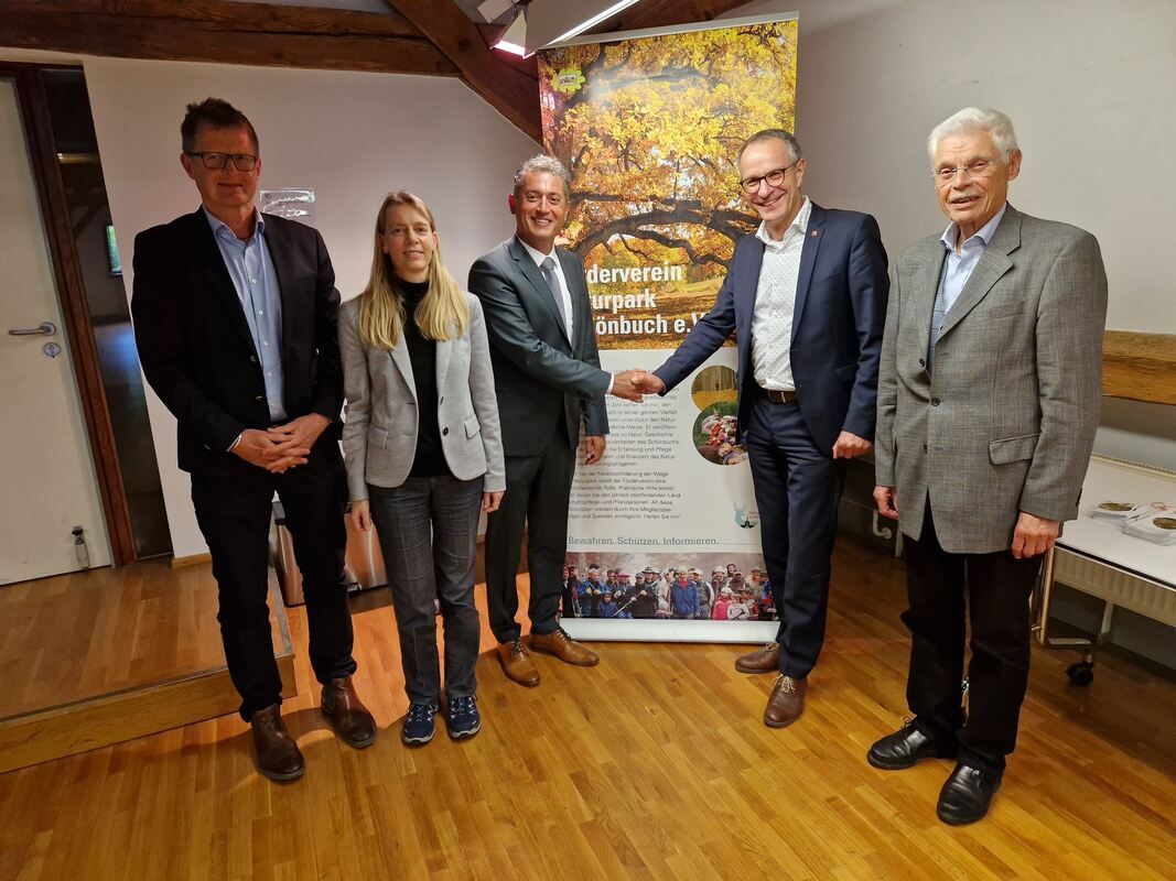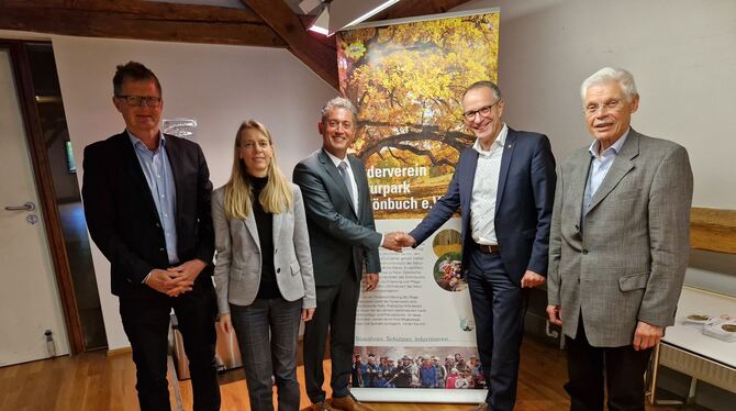 KIRCHENTELLINSFURT. Wechsel an der Spitze des Fördervereins Naturpark Schönbuch: Waldenbuchs Ex-Bürgermeister Michael Lutz hat das Amt des Vorsitzenden an den Kirchentellinsfurter Rathauschef Bernd Haug übergeben. Der stellvertretende Vorsitzende Fritz-Eberhard Griesinger lobte Lutz für sein vorbildliches Engagement: »Auch bei den jährlichen Landschaftspflegeaktionen packte Michael Lutz stets persönlich mit an und ging mit gutem Beispiel voran.«