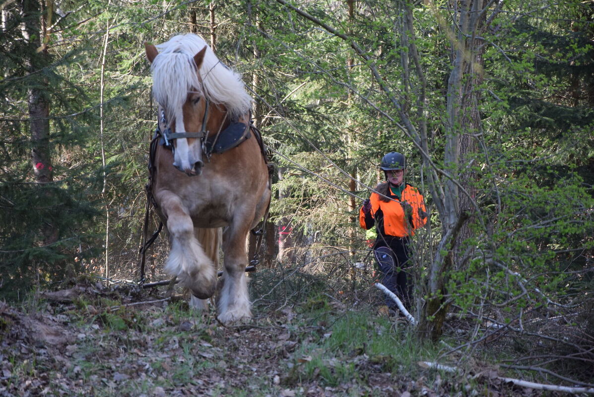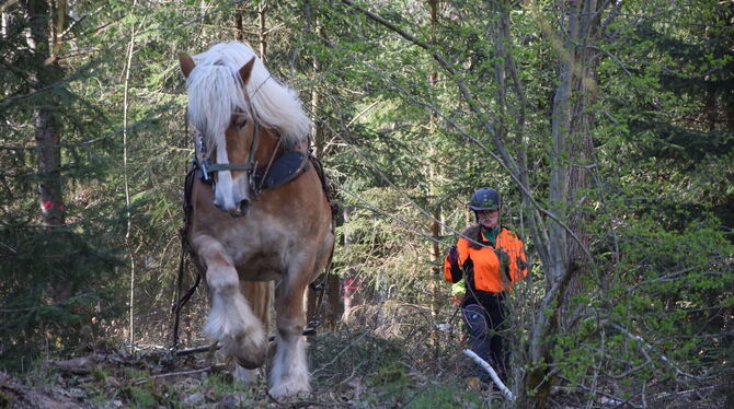 Kraftvoll zieht das Pferd »Dolch« Baumstämme aus dem Schönbuch.