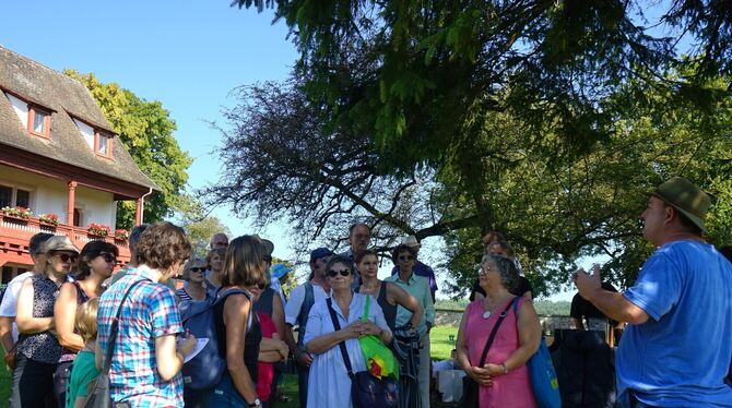 Wie war das damals mit Schloss Einsiedel? Marksu Appenzeller (rechts) wusste viel zu erzählen. FOTO: STRAUB