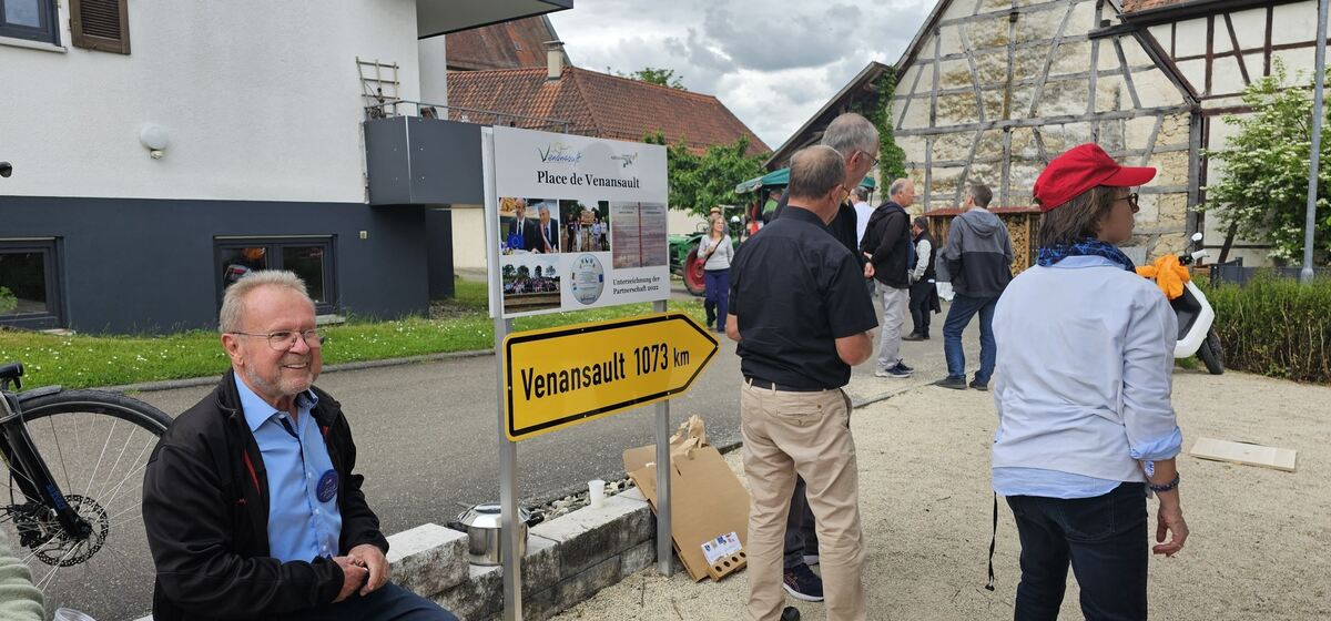 Mehr als 1.000 Kilometer mussten die Gäste aus Venansault zurücklegen, bevor sie Erich Spannenberger (vorne) begrüßen konnte. FOTO: JOCHEN