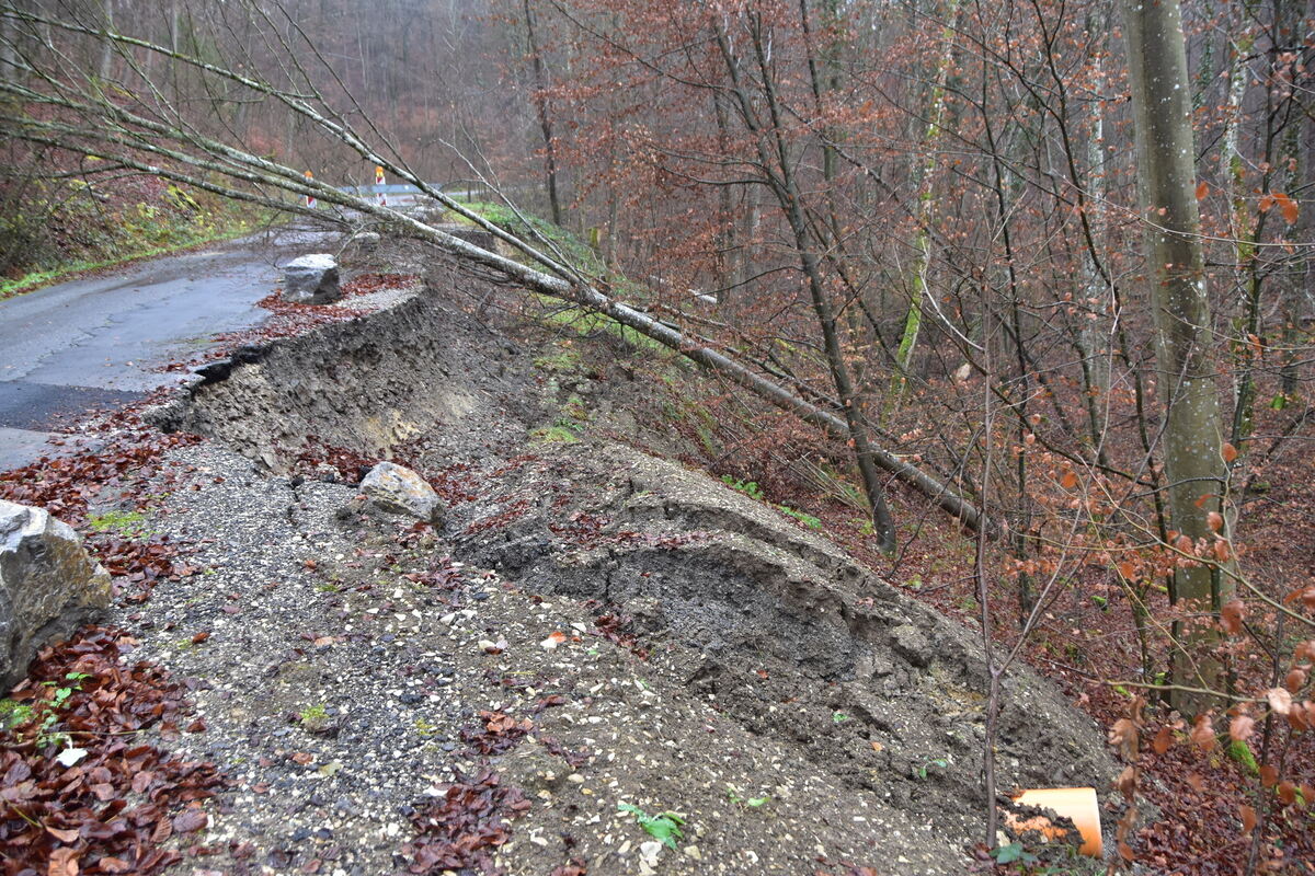 Der aktuell betroffene sowie weitere Abschnitte der Verbindungsstraße befinden sich in einem auf der Karte des Landesamts für Geologie, Rohstoff und Bergbau ausgewiesenen Rutschungsgebiet. Es wurden Rissbildungen sowohl im Bankett, als auch im Asphaltbelag festgestellt und weitere Rutschungen sind bei Belastung nicht auszuschließen.