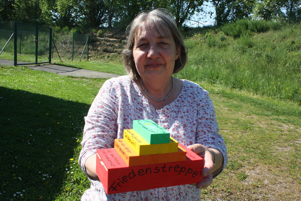Friederike Zilles mit der »Friedenstreppe«, die Probleme lösen hilft.