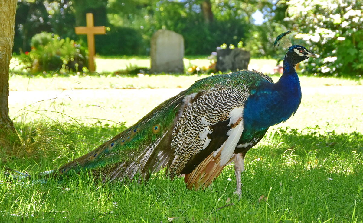 Was macht ein Pfau auf dem Ofterdinger Bergfriedhof?