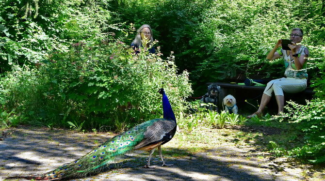 Hat auf dem Ofterdinger Friedhof offenbar eine neue Heimat gefunden – der Pfau Olaf.