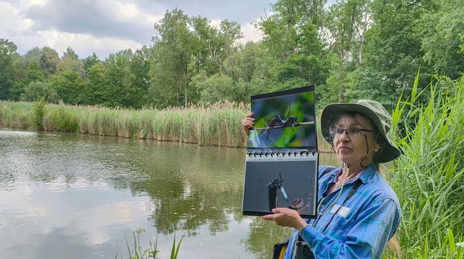 Edelgard Segge-wiße zeigt verschiedene Libellenarten auf Bildern. FOTO: STRAUB