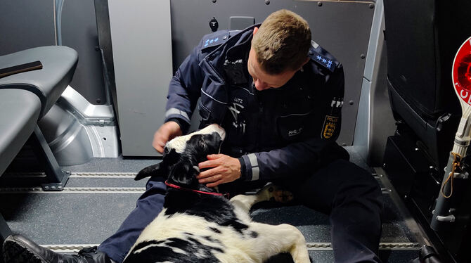 TÜBINGEN. Bevor etwas Schlimmeres an der Bundesstraße zwischen Tübingen und Rottenburg passieren konnte, haben Polizisten ein kleines Kälbchen gerettet. Verkehrsteilnehmer hatten das verstörte Tier am Fahrbahnrand gesehen und die Polizei alarmiert. Das war gegen 1.15 Uhr in der Nacht. Laut Polizei sicherten Menschen das Kalb, bis die Streife eintraf. Die Polizei Reutlingen schreibt auf ihrer Facebookseite: »Das Kälbchen fühlte sich in der Gesellschaft unseres Kollegen sofort sichtlich wohl.«