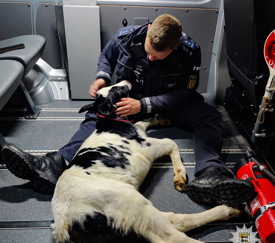 Die Polizisten luden es in den Streifenwagen und kümmerten sich um das Jungtier. Doch jetzt galt es herauszufinden, wo das Muttertier war und zu welchem Bauernhof die Rinder gehören. »Das konnten die Kollegen recht schnell herausfinden, denn sie kennen sich in ihrem Revier sehr gut aus«, so Gerhard Jaudas, Sprecher des Polizeipräsidiums Reutlingen.