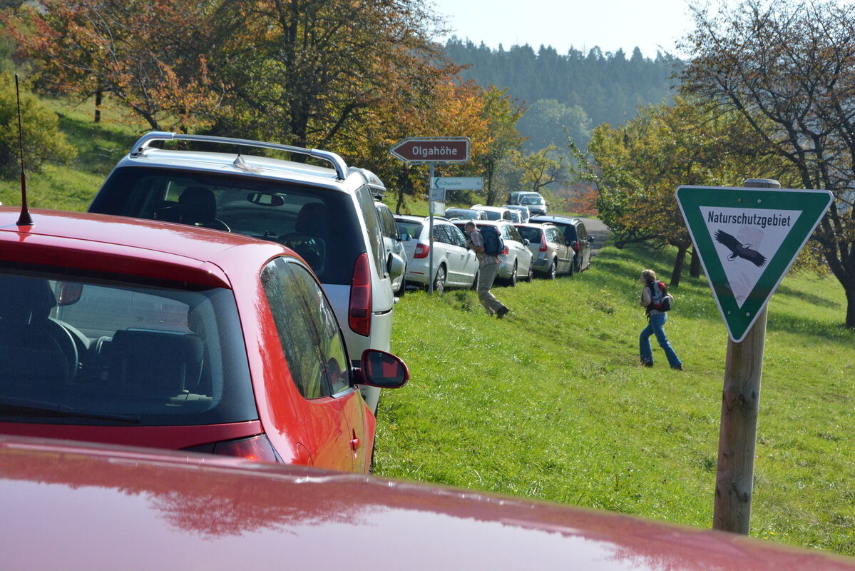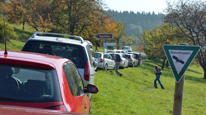 Autoschlange im Naturschutzgebiet an der Olgahöhe in Mössingen. FOTO: MEYER
