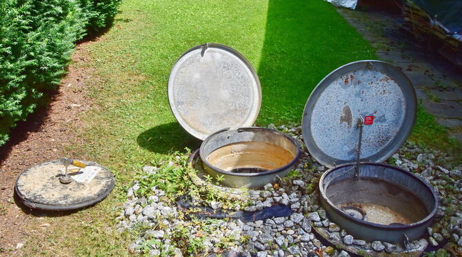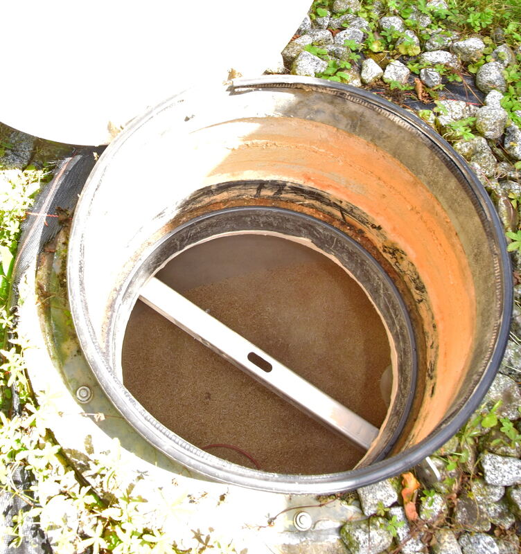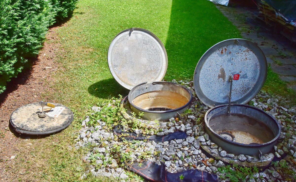 Öffnung zum Erdtank des Pelletslagers (links) und Befüllungsschacht (rechts). Hier erlitten zwei Männer schwere Kohlenmonoxidvergiftungen.