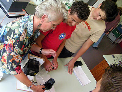 Über ein Messgerät machte Ursula Rath den Mössinger Schülern deutlich, wie viel Strom ein Fön verbraucht.