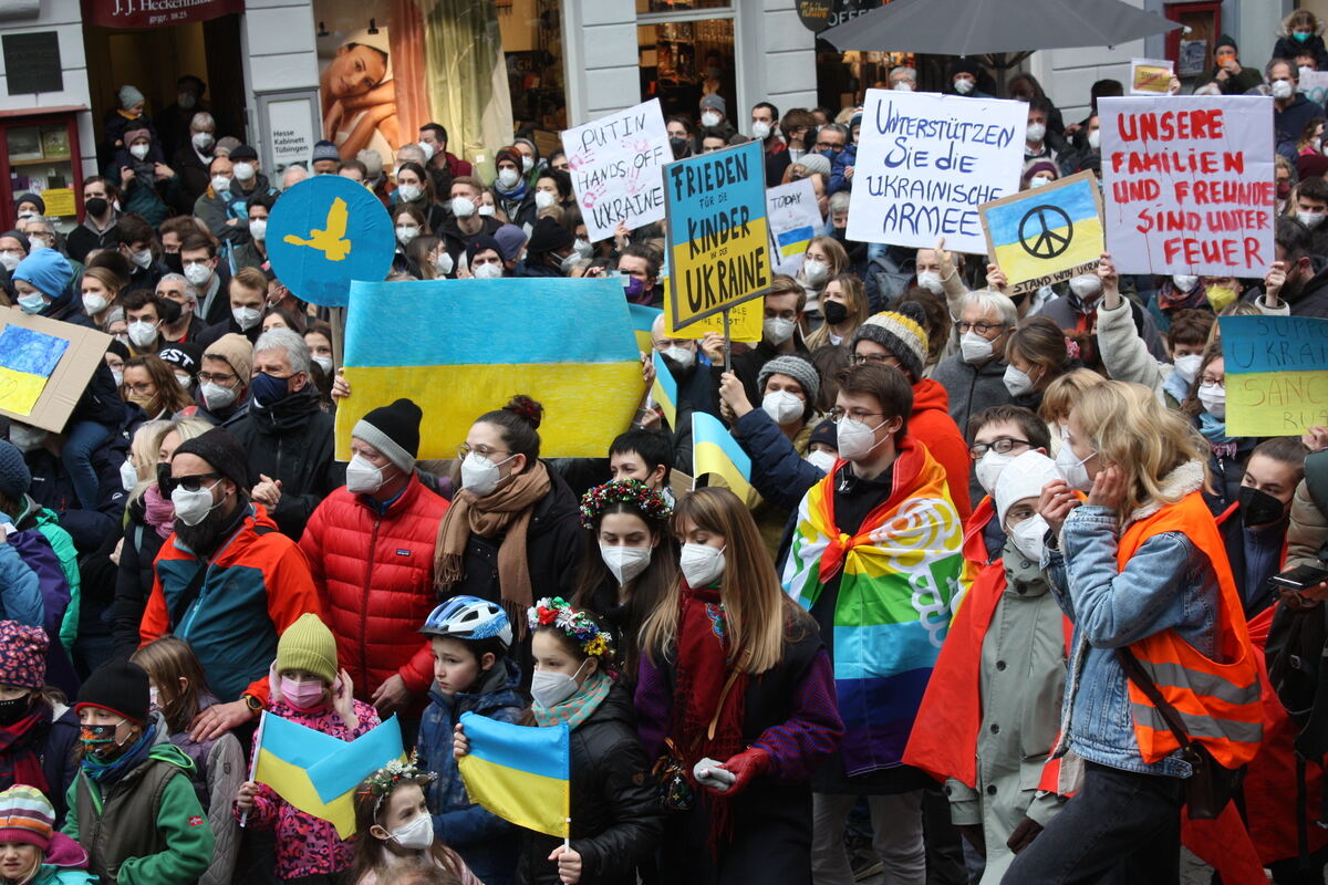 Über 1.000 Menschen demonstrieren in Tübingen gegen Putins Krieg