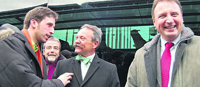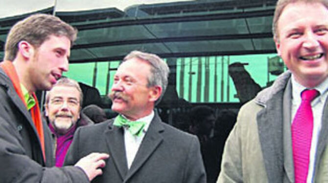 Freude am Airport-Sprinter (von links): der Tübinger OB Boris Palmer, Naldo-Geschäftsführer Wolfgang Lang, Flughafen-Chef Georg Fundel und Landrat Joachim Walter.