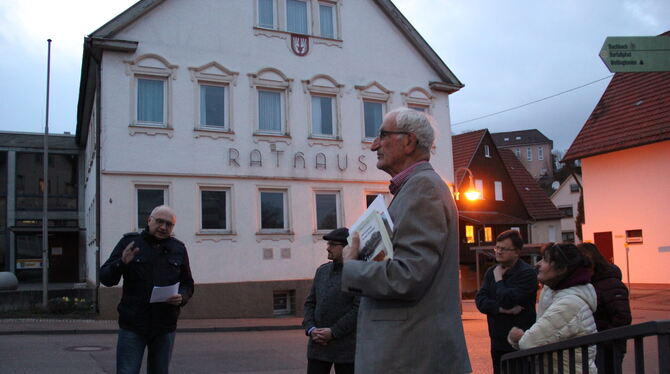 Spannende Geschichte: Wolfgang Sannwald (links) neben ihm Bürgermeister Steffen Heß und Willi Kemmler, Vorsitzender des Geschichts- und Altertumsvereins. FOTO: FÖRDER