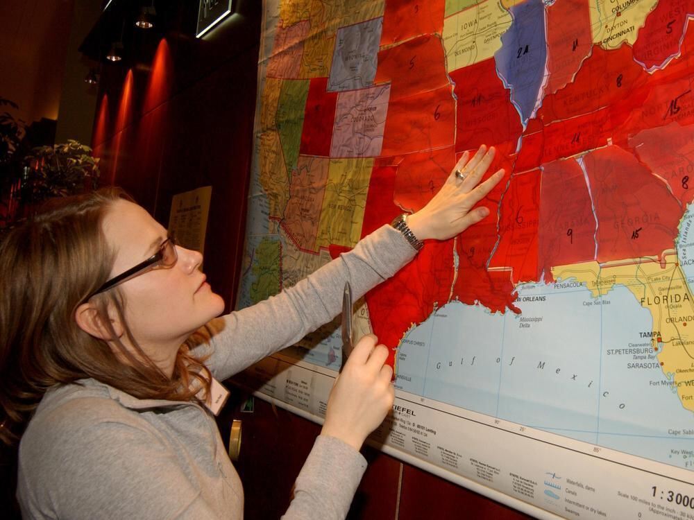 Wer holt welchen Staat? In der Wahlnacht 2004 verfolgten viele im Institut das Geschehen mit.