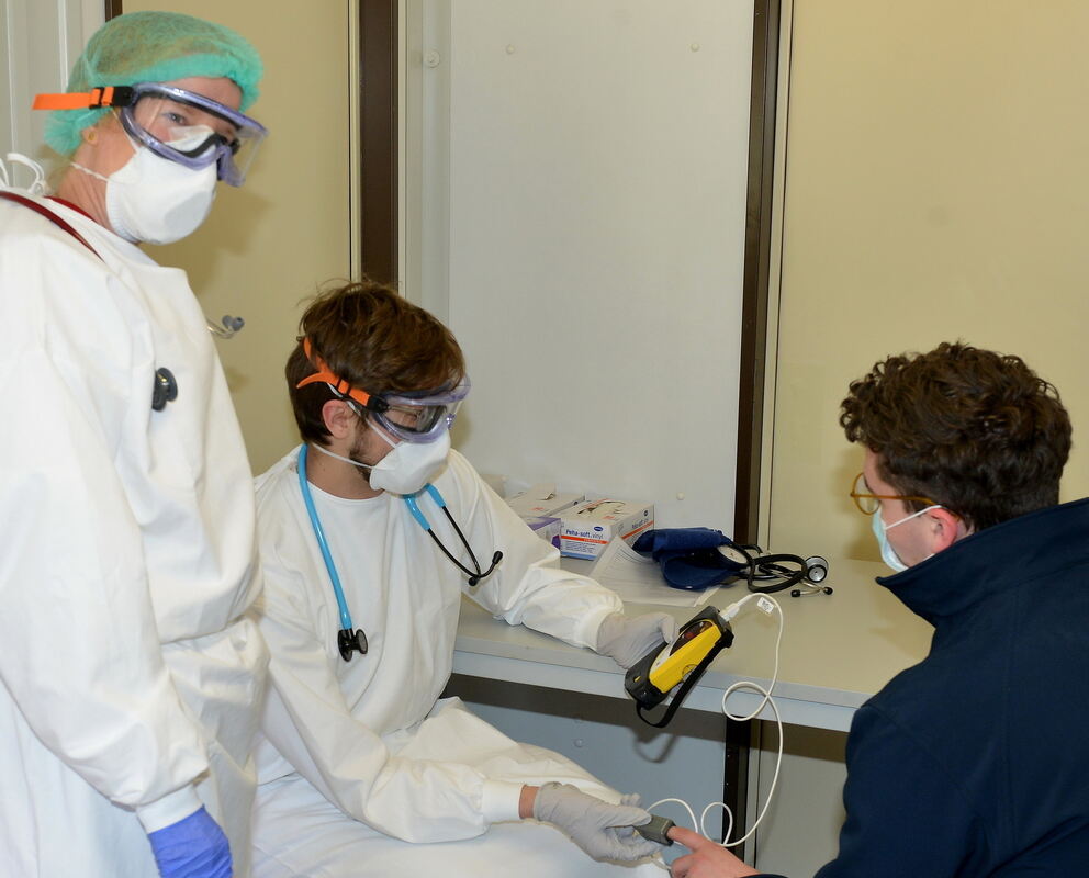 Fieberambulanz auf dem Tübinger Festplatz im März. FOTO: NIETHAMMER