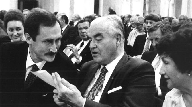 Dem früheren Tübinger OB Hans Gmelin (Mitte), hier mit Nachfolger Eugen Schmid, wurde wegen seiner Nazi-Vergangenheit die Ehrenbürgerwürde aberkannt. Foto: Pacher