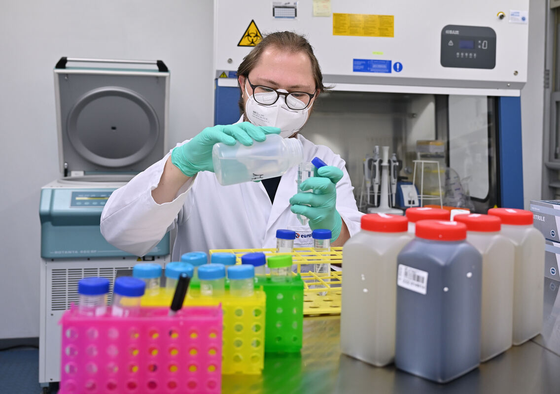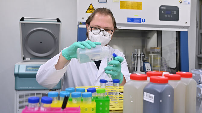 Die Mitarbeiter des Eurofins Institut Jäger untersuchen Abwasser auf Covid-19-Viren von Betrieben und Städten und Gemeinden in ihrem Labor.