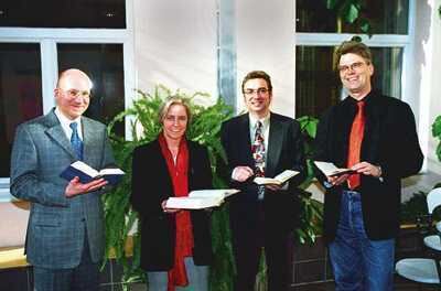 Es lohnt sich, in der Bibel zu lesen. Davon wollen (von links) Thomas Steiger, Marie-Luise Kling de Lazzer, Martin Jäger und Hans-Peter Krüger auch andere mit vielfältigen Veranstaltungen in Tübinger Kirchengemeinden überzeugen. Foto: mwm