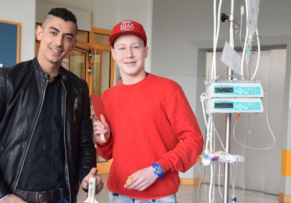 Sevgim (links) ist zur Nachkontrolle in der Klinik und spielt mit Daniel auf Station 14 schnell noch eine Runde Tischtennis.