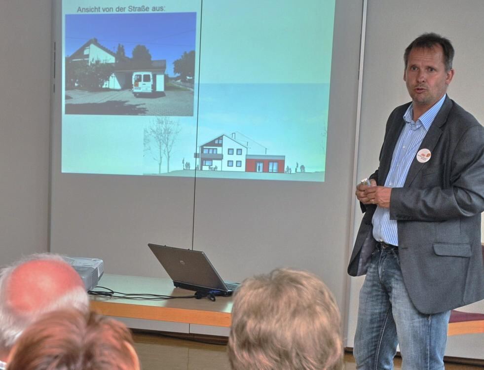 Torsten Hau erläutert den Um- und Neubau des Wohnhauses in Öschingen.