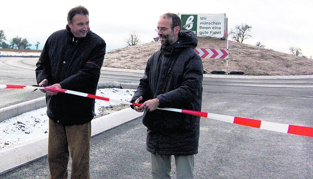 Landrat Joachim Walter (links) und Kusterdingens Bürgermeister Jürgen Soltau machten den Weg frei. FOTO: PETRAT