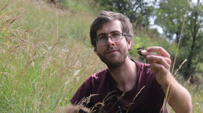 Robert Birch und Thomas Gottschalk sind am Tübinger Spitzberg dem Weißen Waldportier auf der Spur. FOTOS: WALDERICH/GOTTSCHALK