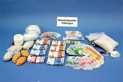 Arrangiert und präsentiert wie auf einem Gabentisch: Drogen und Drogengeld nach der Zerschlagung des Dealer-Rings im Kreis Tübingen.
