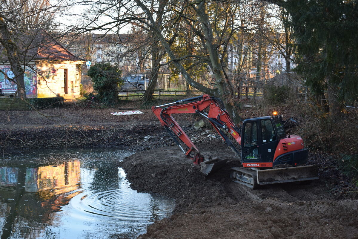 Seit vergangener Woche wird das Wasser erneut abgelassen. Aus Artenschutzgründen können Arbeiten am und im See nur in den Wintermonaten stattfinden. Sobald der See leer ist, erhalten die Flachwasserzonen in den Randbereichen ihre endgültige Form. Der See wird nicht kleiner, lediglich die Form der Ufer wird überarbeitet. Außerdem werden die Fundamente für die Seeterrasse gelegt. Am Ostufer werden Stufen eingebaut, die die spätere Unterhaltung des Sees ermöglichen. Bei allen Maßnahmen ist der Tübinger Fischereiverein als Betreiber des Sees als Aufzuchtgewässer eng eingebunden.