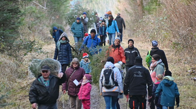 Schwer was los im Ofterdinger Gemeindewald bei der Weihnachtsbaum- Selbstschlageaktion.