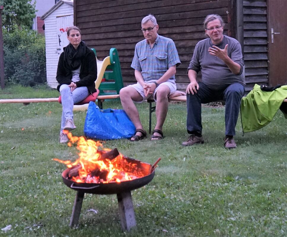 NEHREN. Zur »Kosmologie am Lagerfeuer« hatte die evangelische Kirchengemeinde Nehren eingeladen. Vor einer Handvoll Interessierter sprach Astrophysiker Nikolai von Krusenstiern im Garten des Gemeindehauses über den Weltraum und Kräfte. An zwei Feuerschalen erinnerte er dabei an einen Märchenerzähler, der durchaus Spannung aufzubauen wusste und das im Kreis sitzende Publikum mit einbezog.