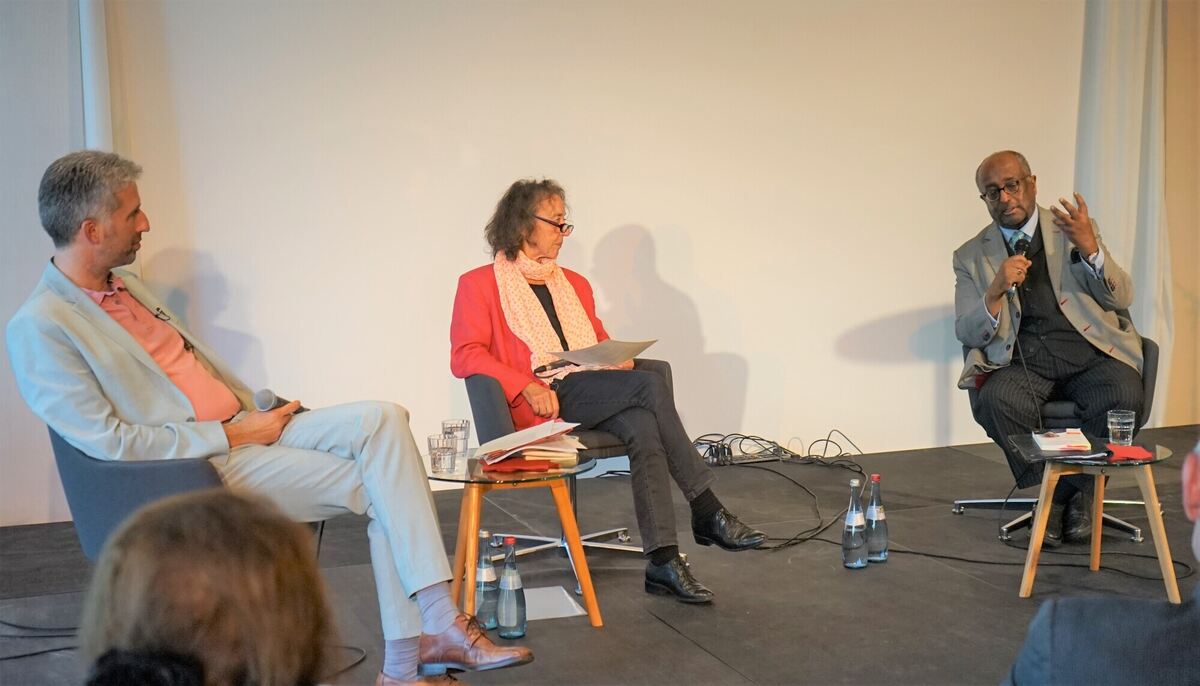 Tübingens Oberbürgermeister Boris Palmer, seine Parteifreundin Uschi Eid, Präsidentin der Deutschen Afrika Stiftung, und Buchautor Asfa-Wossen Asserate. FOTOS: STRAUB